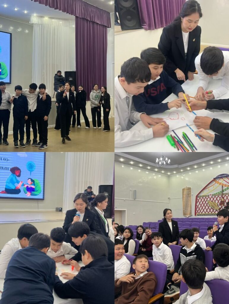 Іс-шара барысында оқушыларға арналған психологиялық тренингтер өткізілді. Тренингтерде жасөспірімдердің эмоцияларын тану, өз сезімдерін ашық білдіру және күйзелісті жеңу жолдары қарастырылды. Сонымен қатар, слайд-презентация арқылы қауіп белгілері және көмекке жүгінудің маңыздылығы туралы ақпарат берілді. Жауапты маман: Досқалиева Ақтолқын.