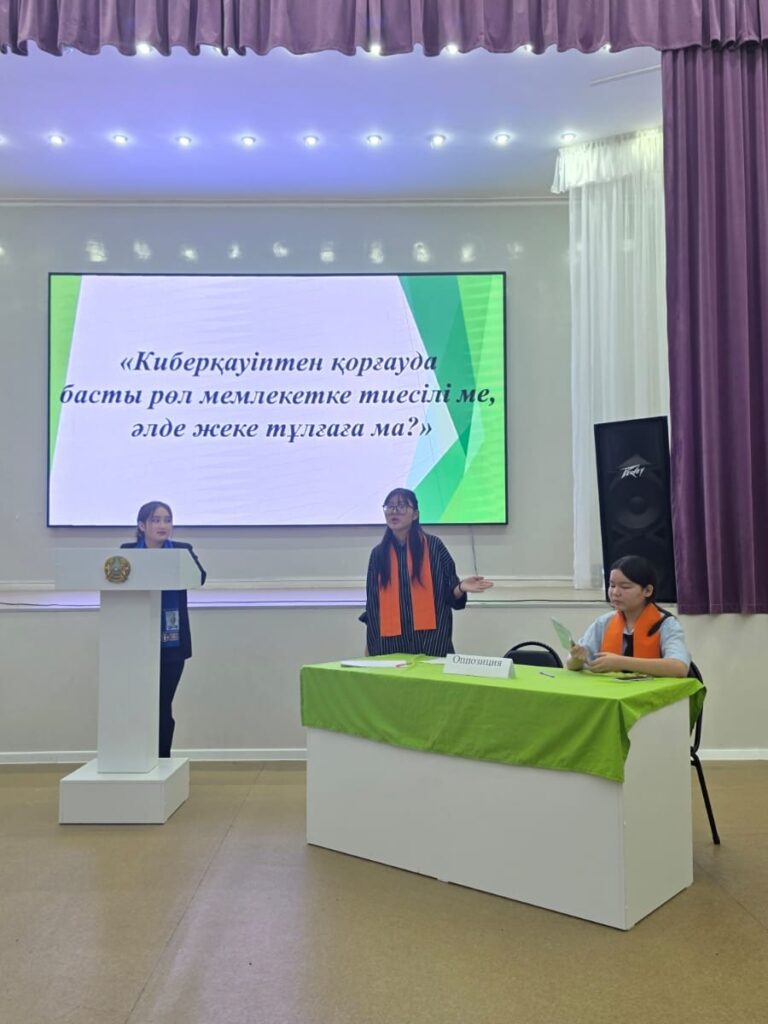 Тақырыбында 9-сыныптар арасында өткен дебаттың мақсаты – оқушылардың киберқауіпсіздік туралы түсінігін кеңейту, сыни ойлау қабілетін дамыту және жеке жауапкершілікті сезінуге баулу.