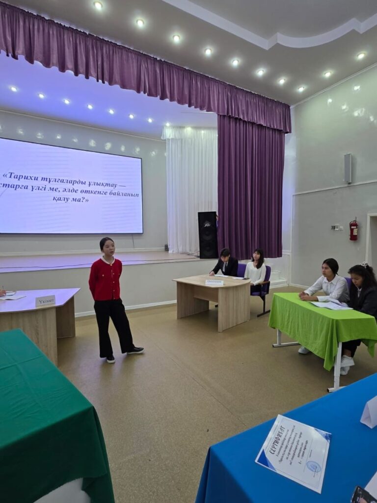 Дебаттың мақсаты – тарихи тұлғалардың қоғамдағы рөлін түсіндіру, олардың өнегелі өмірі арқылы жастардың азаматтық көзқарасын қалыптастыру, сыни ойлау мен еркін пікір білдіру дағдыларын дамыту. Пікірсайыс барысында оқушылар тарихи тұлғалардың маңызы мен бүгінгі жастарға берер тәрбиелік мәні туралы өз ойларын дәлелді түрде ортаға салды.
